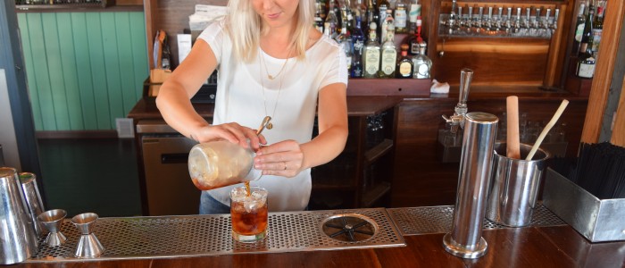 For the second installment of our craft cocktail series I chose a heavy hitter. Ballyhoo is one of my favorite places to grab a drink, the menu is so simple and the bartenders so skilled. They offer all the classics like an Old Fashioned or a sidecar, but they also have jam sessions, pick a jam and a spirit and they whip something up for you, which is a great change-up from the everyday cocktails. I often go with gin when I have a jam session. It plays well with most of the jams they have on hand, but the bartenders are very helpful in choosing the right jam and spirit combination. Another unique drink choice that I have yet to try is the Tea Party you chose from five types of tea pick a spirit, and they create a drink. However, the purpose of this trip was to sample the drinks our bartender Sarah had created for our featured October cocktails, and she did not disappoint.